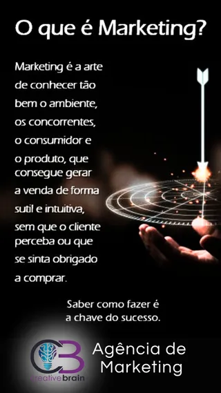 Estratégia com propósito e criatividade com alma. A Creative Brain cria, conduz e posiciona sua marca como protagonista no seu mercado, de forma estratégica, elegante e inesquecível. Não somos uma agência de marketing digital. Somos a mente por trás da marca que todos lembram. Aqui não vendemos likes, criamos e gerenciamos legado. Na Creative Brain, não fazemos posts, nós criamos presença. Somos diferentes porque não atuamos como executores de redes sociais, mas como pensadores estratégicos. Nossa especialidade é a inteligência por trás da influência. Aqui, não entregamos posts – entregamos presença marcante, memorável, pensada para cada detalhe da jornada do seu público-alvo. Mais do que Marketing, somos estratégia.